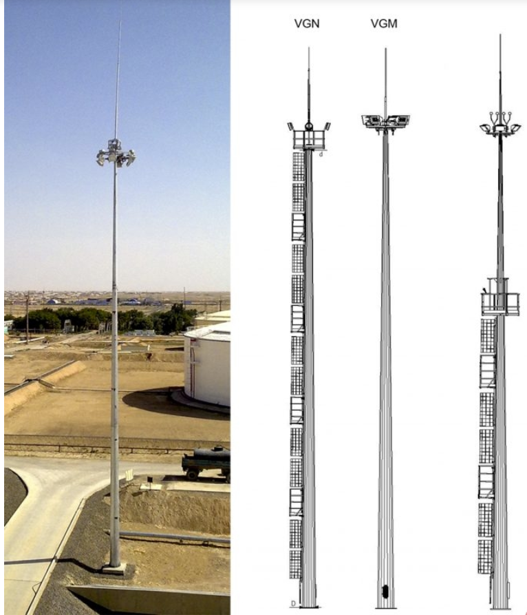 Lighting masts are made of sheet steel by bending with one, two or three longitudinal welds, protected from corrosion by hot-dip galvanizing (ISO 1461). This type of coating is not decorative and is of a purely functional nature. corrosion resistance guarantee – at least 25 years. At the request of the customer, paint and varnish coating is possible.
