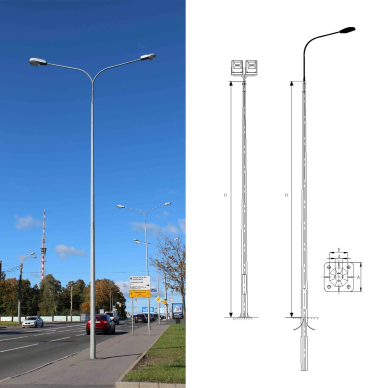 Poles are manufactured of steel sheets by bending with one longitudinal weld, they are protected from corrosion by hot galvanizing (ISO 1461).